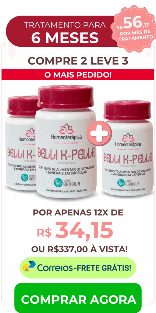 Belli K-Pelle contém Biotina e Zinco, que fortalecem os folículos capilares, reduzindo a queda e promovendo o crescimento saudável dos fios.